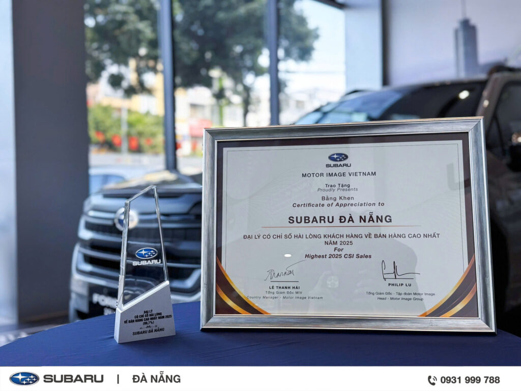 Những giải thưởng không chỉ là cúp và bằng khen, mà là “bản đồ” ghi lại hành trình 2025 của Subaru Đà Nẵng: doanh số tăng trưởng mạnh, marketing lan tỏa hiệu quả, CSI bán hàng được khách hàng đánh giá cao, cùng nền tảng hậu mãi – phụ tùng vận hành vững vàng. Mọi nỗ lực đều hội tụ về một mục tiêu: mang đến cảm giác an tâm, niềm tin và sự gắn bó dài lâu cho khách hàng khi lựa chọn Subaru.